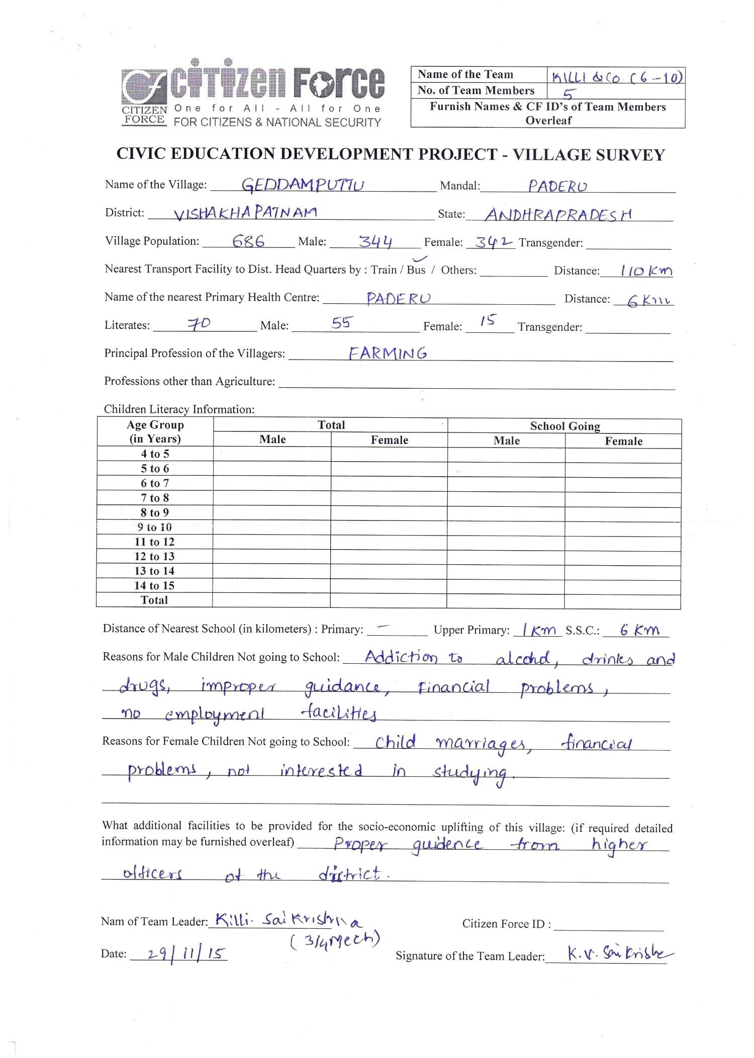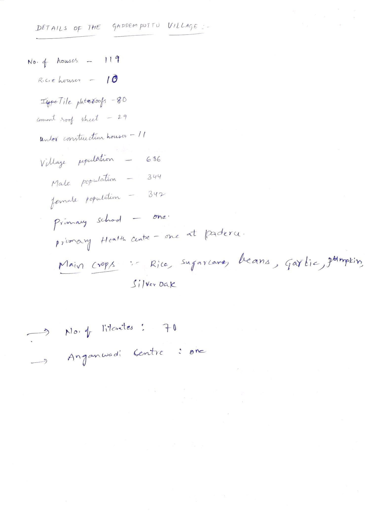 survey reports by BY STUDENT CHAPTER AUCE(A)-GEDDAMPUTTU VILLAGE PADERU MANDAL